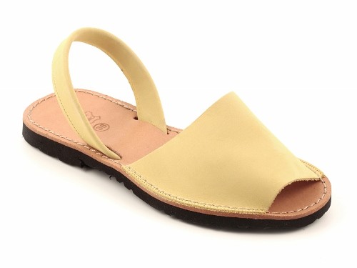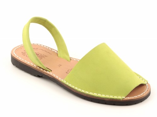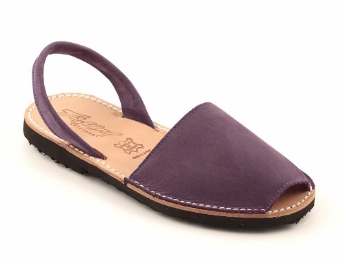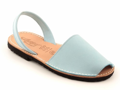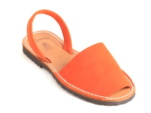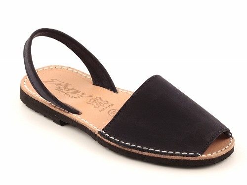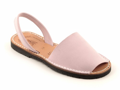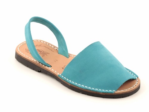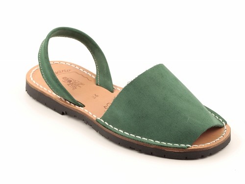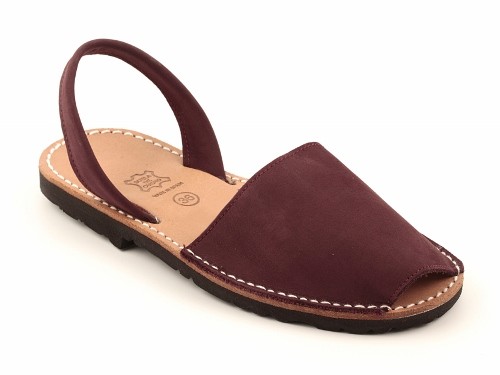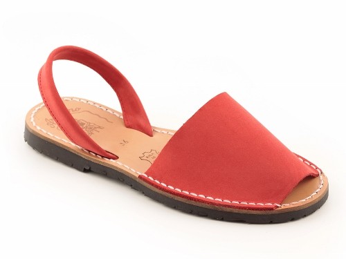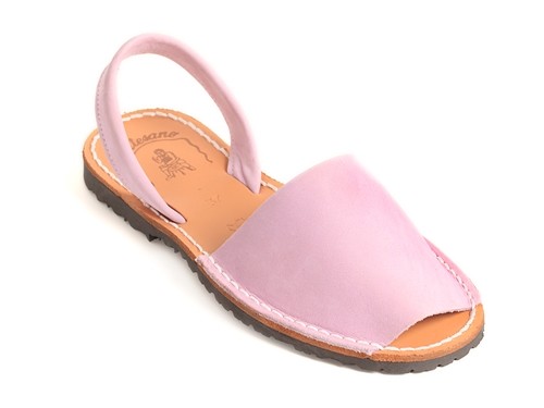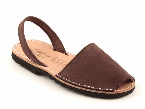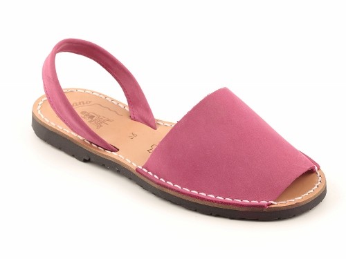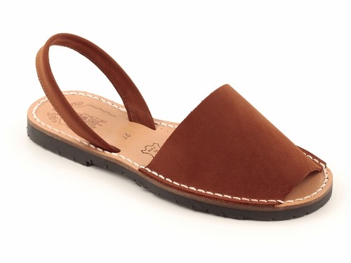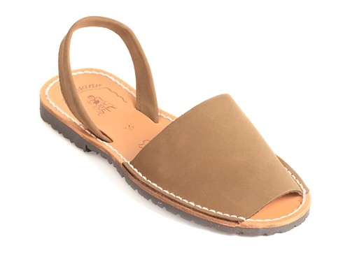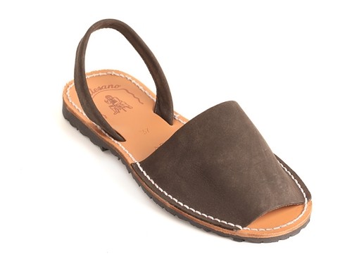 Sandalia ibicenca o menorquina de serraje (nobuck) con plantilla de piel cosida y suela de caucho ultra ligera.